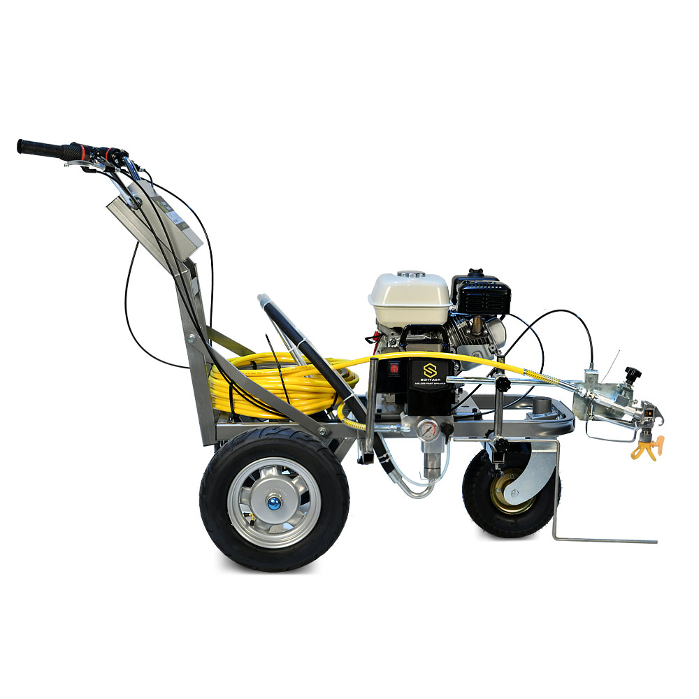 • поршневой насос для краски с бензиновым двигателем на колесной тележке;• шланг 15 метров для краски;
