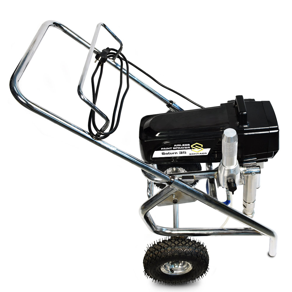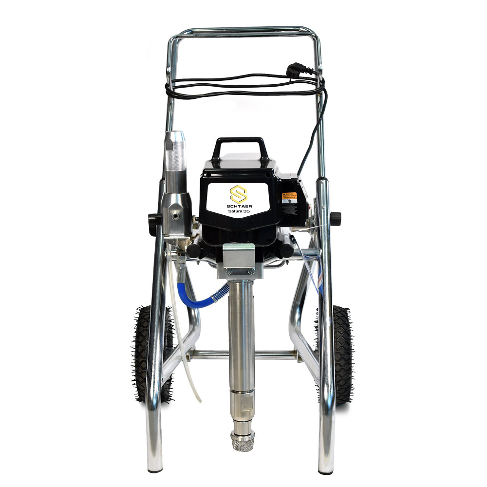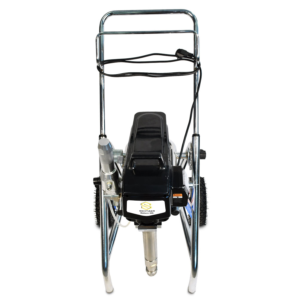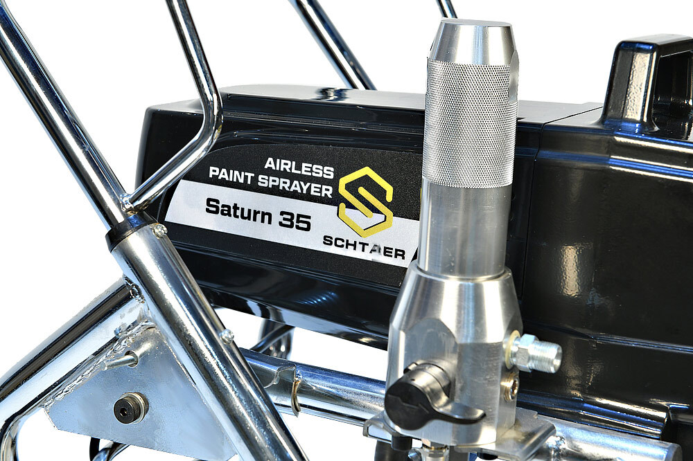 Schtaer Saturn 35 - оборудование для окраски под высоким давлением через окрасочный краскопульт безвоздушного распыления. Окрасочный агрегат безвоздушного распыления предназначен для использования на строительных площадках и промышленных предприятиях. Он применяется для распыления под большим давлением красок средней и высокой вязкости. таких как: огнезащитные краски, фасадные краски, водоэмульсионки, латексные и акриловые краски, грунтовки и эмали по металлу, эпоксидные материала, однокомпонентные краски и двухкомпонентные составы с большим временем жизни, краски и лаки по дереву. Окрасочный аппарат используют для покраски вязкими красками через один окрасочный пистолет, при распылении лакокрасочных материалов средней вязкости аппарат возможно использовать на два краскопульта. Окрасочный аппарат засасывает краску через специальный прямой заборник с фильтром с помощью поршневого электрического насоса. На выходе из насоса краска также фильтруется перед подачей на безвоздушный краскопульт.